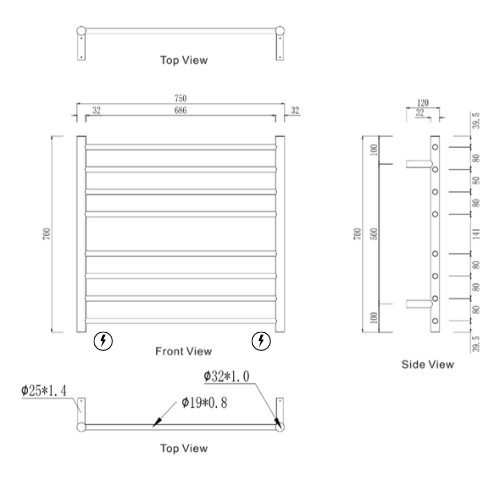 - 8 Bar Heated Towel Rail
